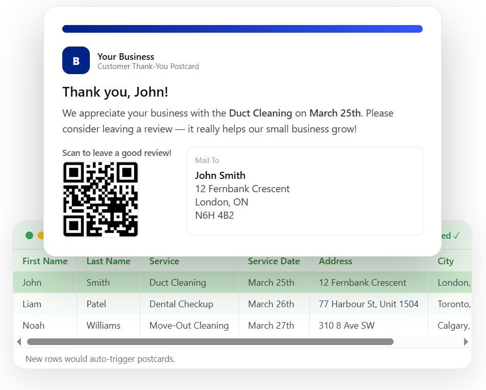 Postly connects Google Sheets, CRMs, and real estate data to send smart, automated direct-mail campaigns.
